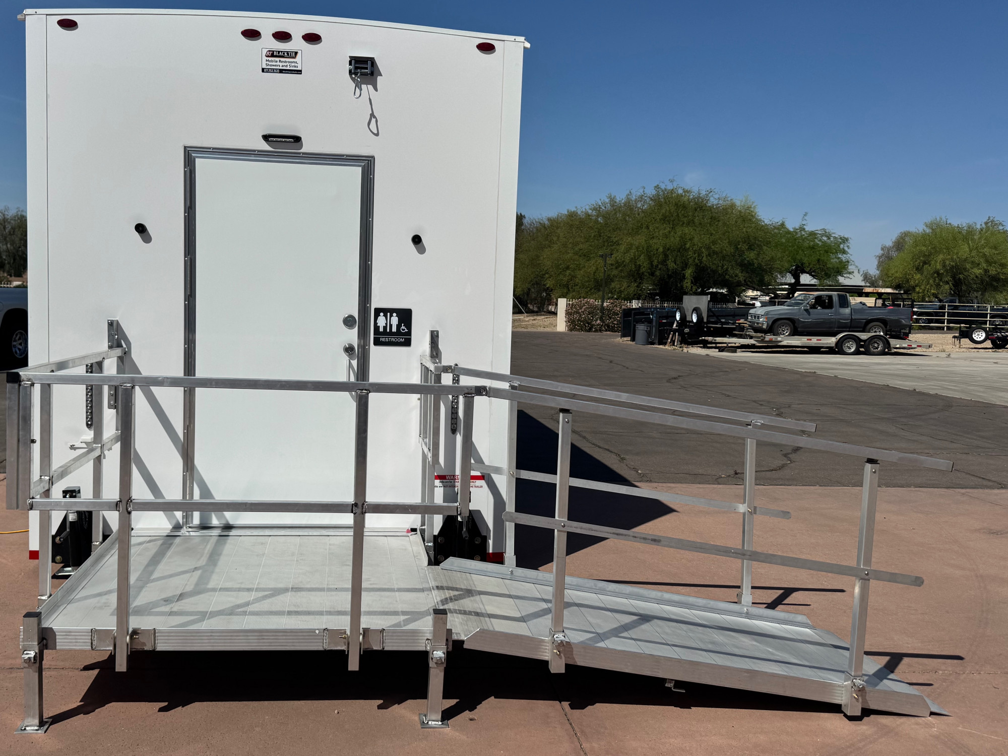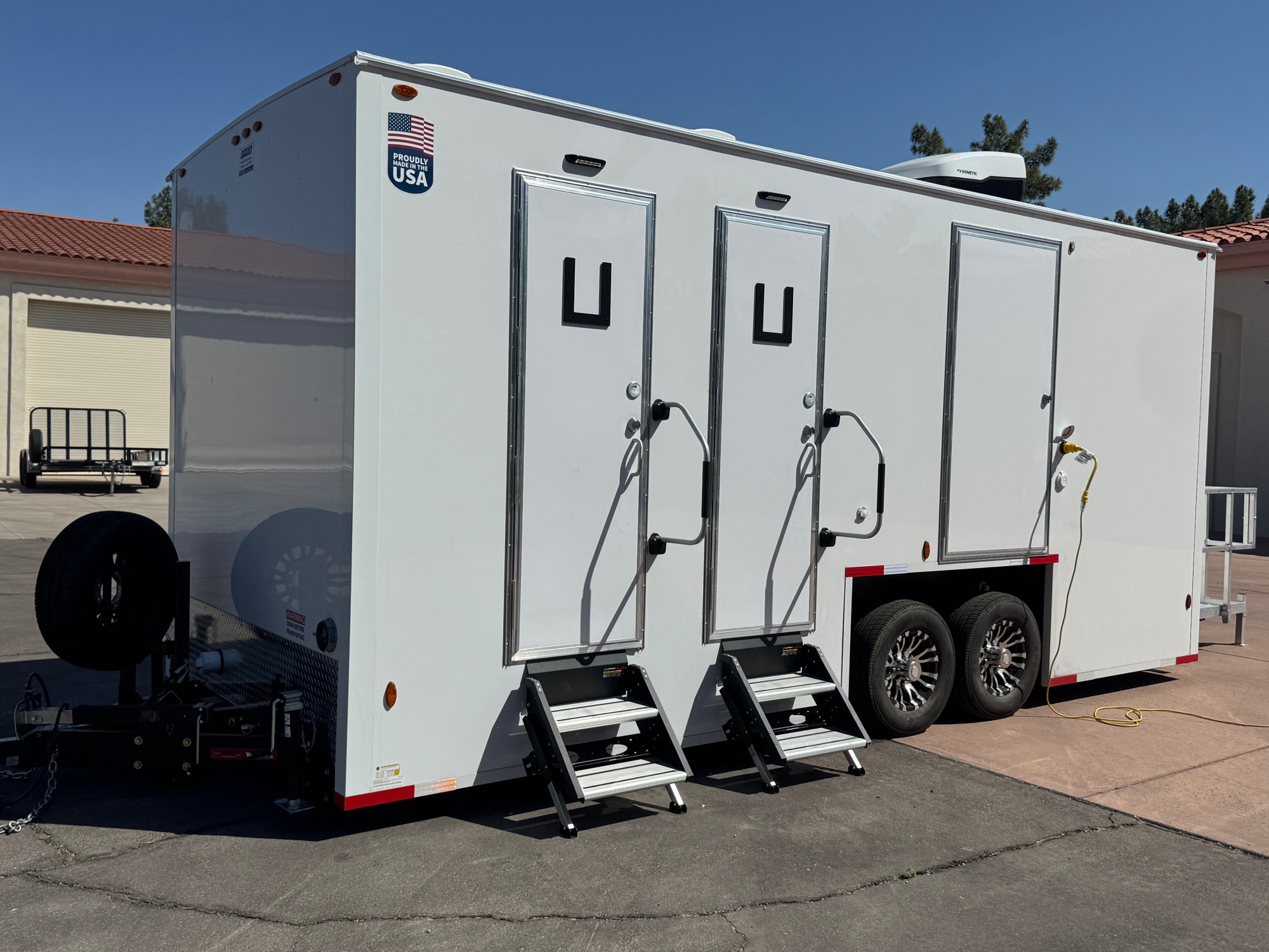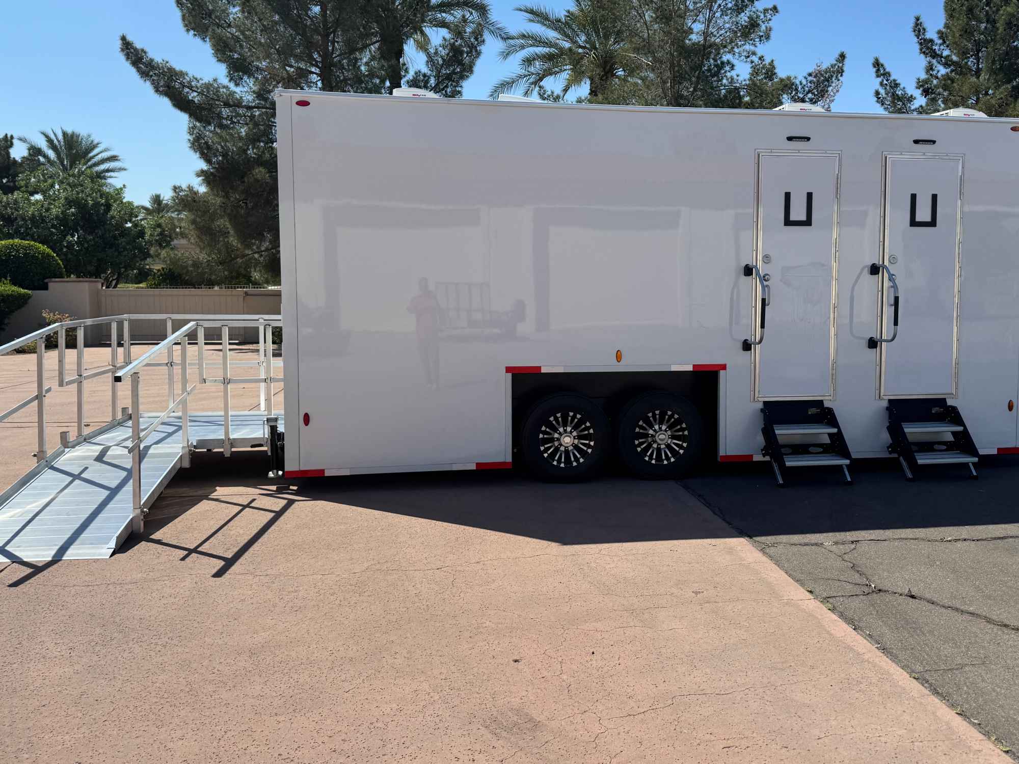 🧼 Bright, modern interior with full-size doors, mirrors, and stylish finishes. Perfect for weddings, corporate events, festivals, or private parties