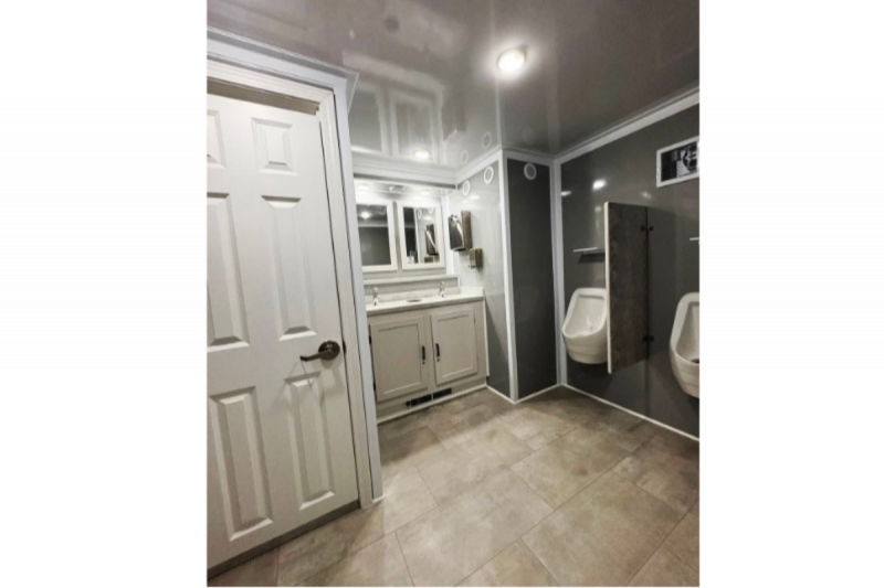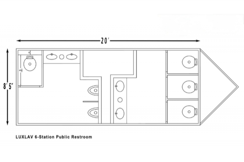 Men’s Side: • 2 Urinals • 1 Private Stall • Dual Vanity Sinks