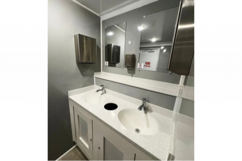Women’s Side: • 3 Private Stalls • Dual Vanity Sinks